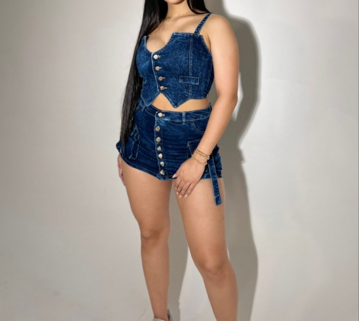 Falda-short full botones y top en V