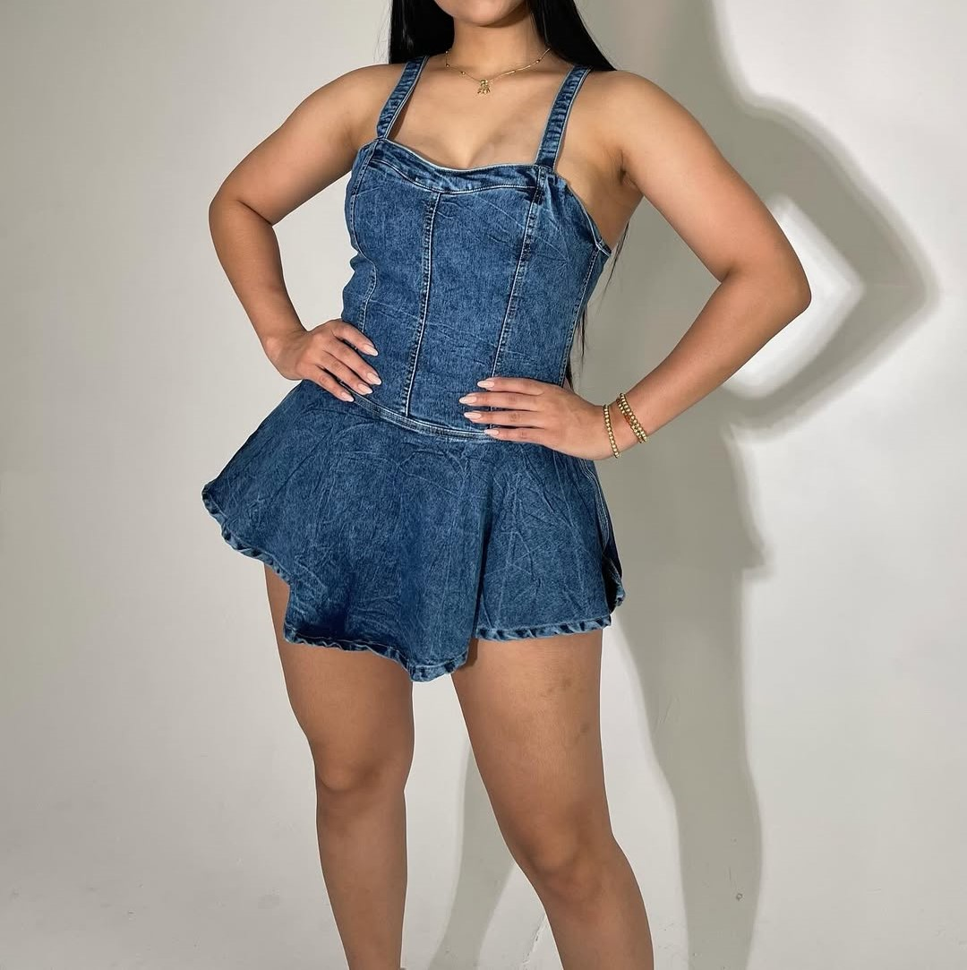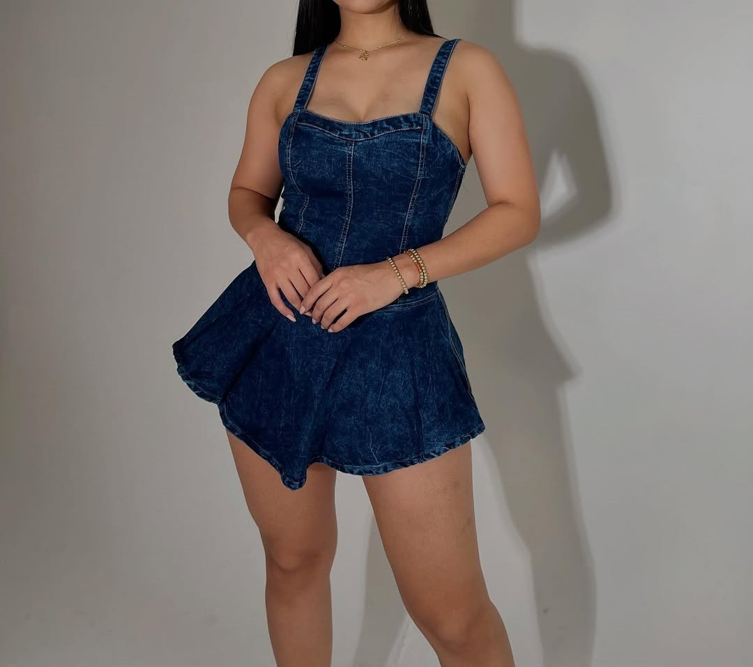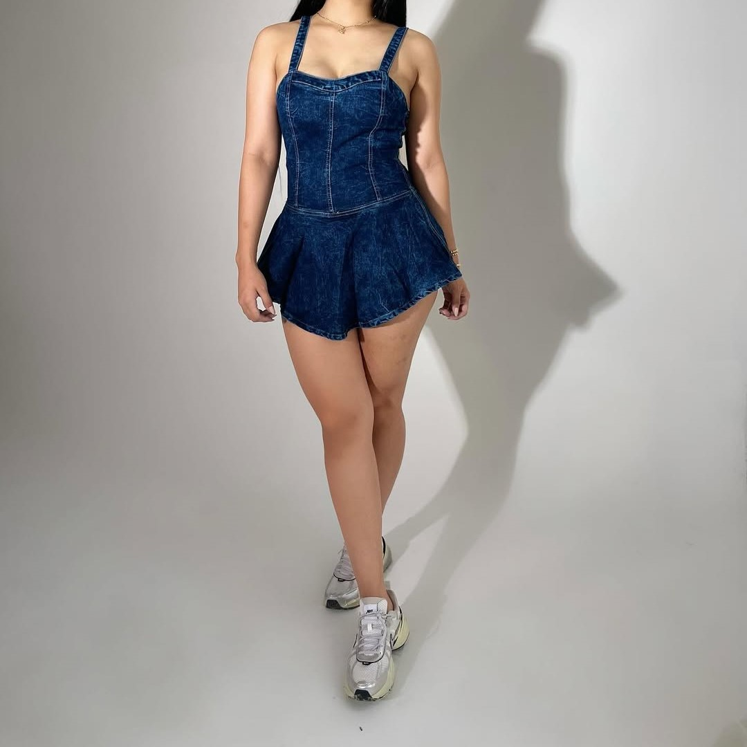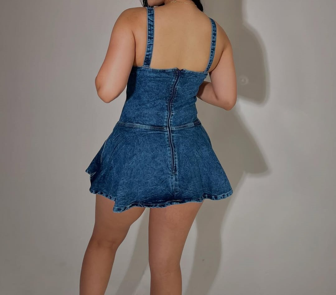 ¿Lista para la combinación perfecta de moda y funcionalidad? Te presentamos nuestros 2 vestidos tipo falda-short en tela jean, ¡ideales para cualquier ocasión!